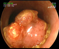La coloscopie permet les biopsies et confirme le diagnostic de cancer. Elle recherche dans le même temps une autre tumeur du colon (dit alors cancer « synchrone ») et des polypes adénomateux (20% des cas).